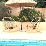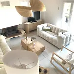 Boasting a location 1.7 km from Plage de la Nartelle Super Public Bath, the 2-bedroom Villa Bellevue Sainte Maxime Un Ecrin De Verdure Au Coeur Du Semaphore Piscine Xxl provides a terrace with mountain views. Offering Wi-Fi, this property is located right around the corner from Pont du Preconil.